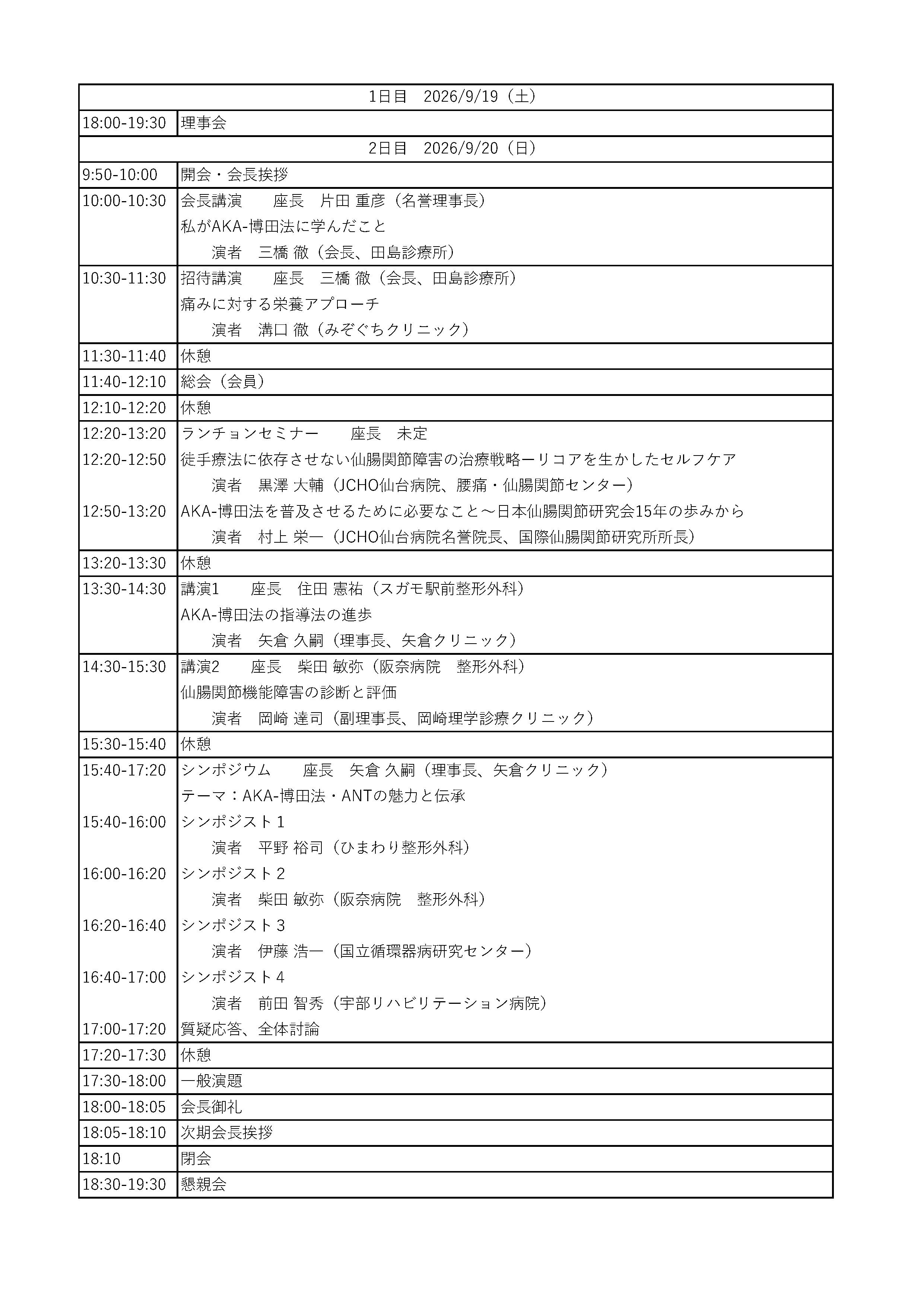 シンポジウムでは、AKA-博田法・ANTの魅力と伝承をテーマに、指導医A・指導者Aの先生方、平野裕司先生、柴田敏弥先生、PTの伊藤浩一先生、OTの前田智秀先生にご講演をいただきディスカッションをいたします。
